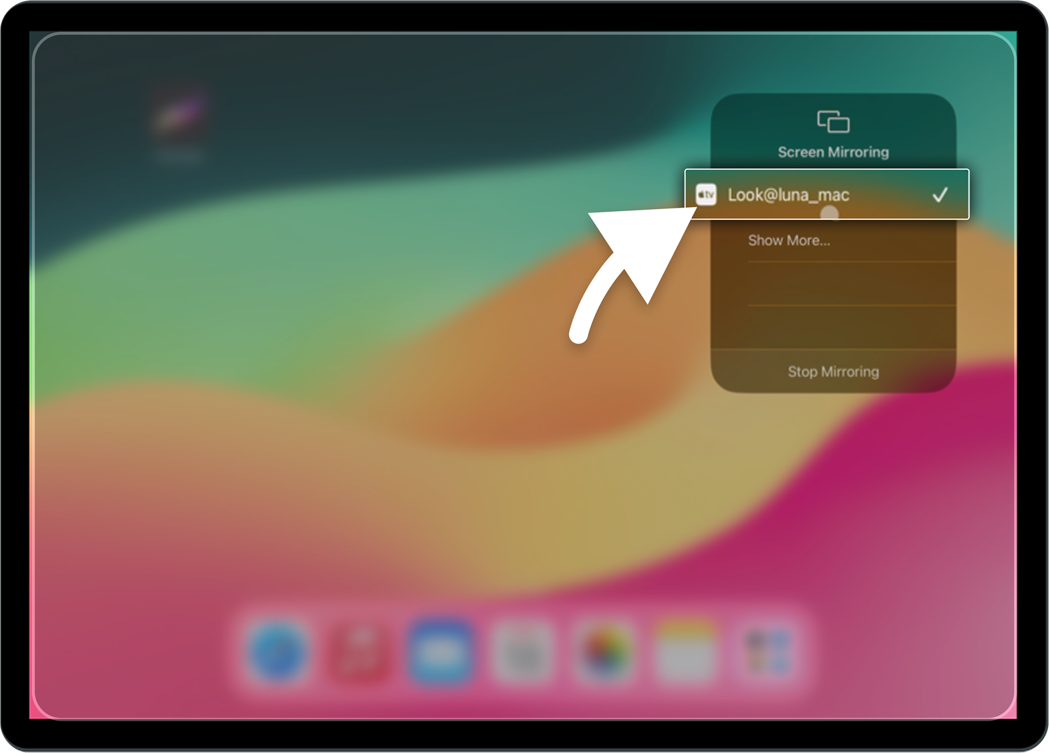 Then tap Screen Mirroring icon and select the “LOOK-” prefix display name to connect.