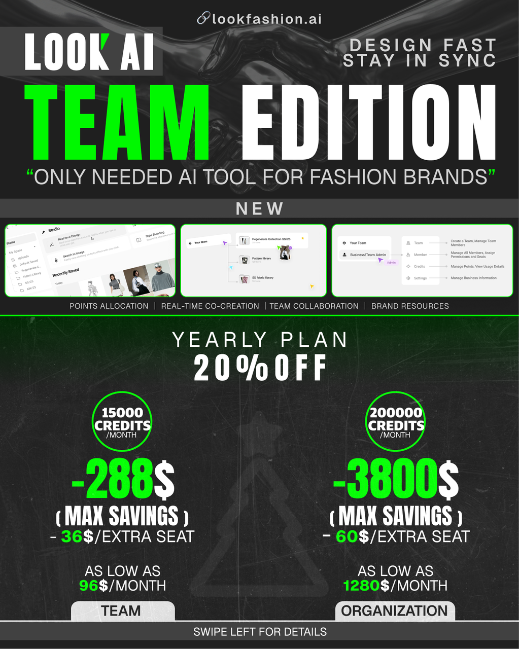 To support how designers actually work together, LOOK AI now introduces Team & Organization Plans — designed to help fashion teams collaborate efficiently, manage credits centrally, and scale design workflows with clarity and control.