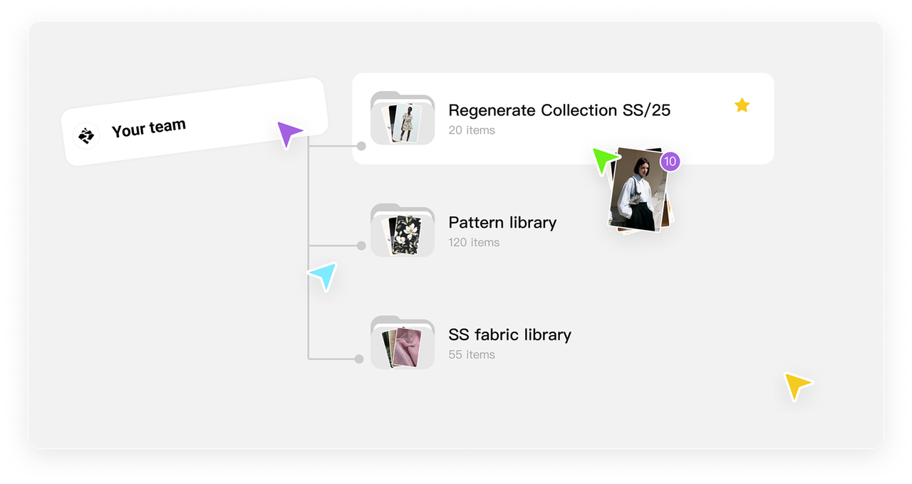 All team members and access shared projects.Create folders within a space to organize team projects. Keep your assets organized by client/season/collection or however your team prefers.
